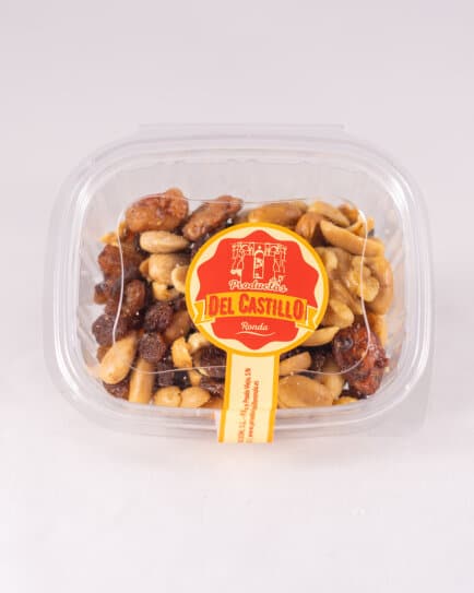 Cóctel de frutos secos con anacardos, cacahuetes garrapiñados, almendras, nueces y pasas. Una mezcla crujiente y deliciosa que combina lo dulce y lo salado, perfecta como snack saludable para cualquier momento del día. Ideal para disfrutar solo, compartir en reuniones o acompañar tus comidas favoritas.